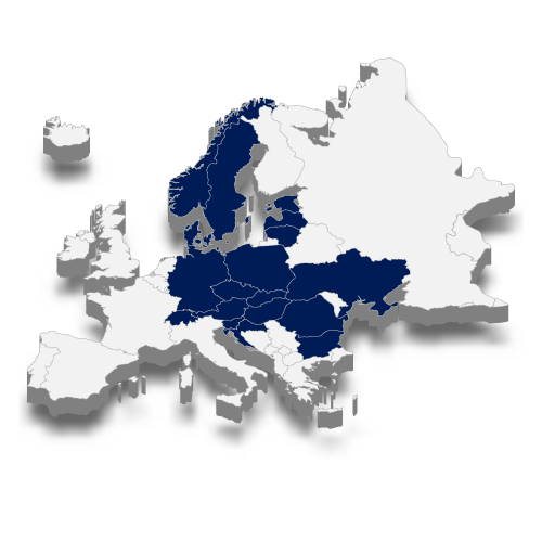 Neben der D-A-CH-Region (Deutschland, Österreich und Schweiz) betreuen wir zahlreiche Länder in Osteuropa wie Polen,Tschechien, Slowakei, Ungarn, Slowenien, Kroatien, Estland, Lettland, Litauen, Rumänien und Bulgarien sowie die skandinavischen Länder Norwegen, Schweden und Dänemark.